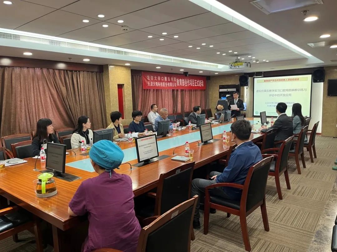 2023年4月24日,在这个春光明媚的日子里,北京大学口腔医院(北大口腔)与江南网页版(天堰科技)召开“虚拟仿真在教学实习口腔局部麻醉训练与评估中的开发应用”项目启动会。北大口腔副院长李铁军、中华口腔医学会副秘书长刘宏伟、北大口腔教育处长董美丽、虚拟仿真教研室主任侯建霞、口腔颌面外科副主任贺洋、天堰科技总经理刘雁飞、天堰科技口腔事业部总经理景颖等人出席,在项目总负责人崔念晖主任主持下,双方展开了热烈而有成效的会晤,确定该项目正式启动。